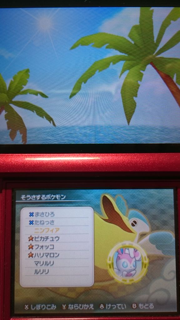 メンバー編成をしたあとダンジョンに出ずに戻りこの画面に来たので、編成に入っているニンフィアだけが黄色なのは理解できます。