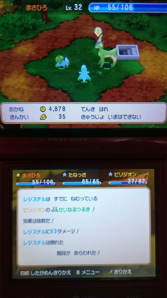 ビリジオンがいなければ、もしレジロックは倒せたとしても道中でPPがなくなりアウトでした。