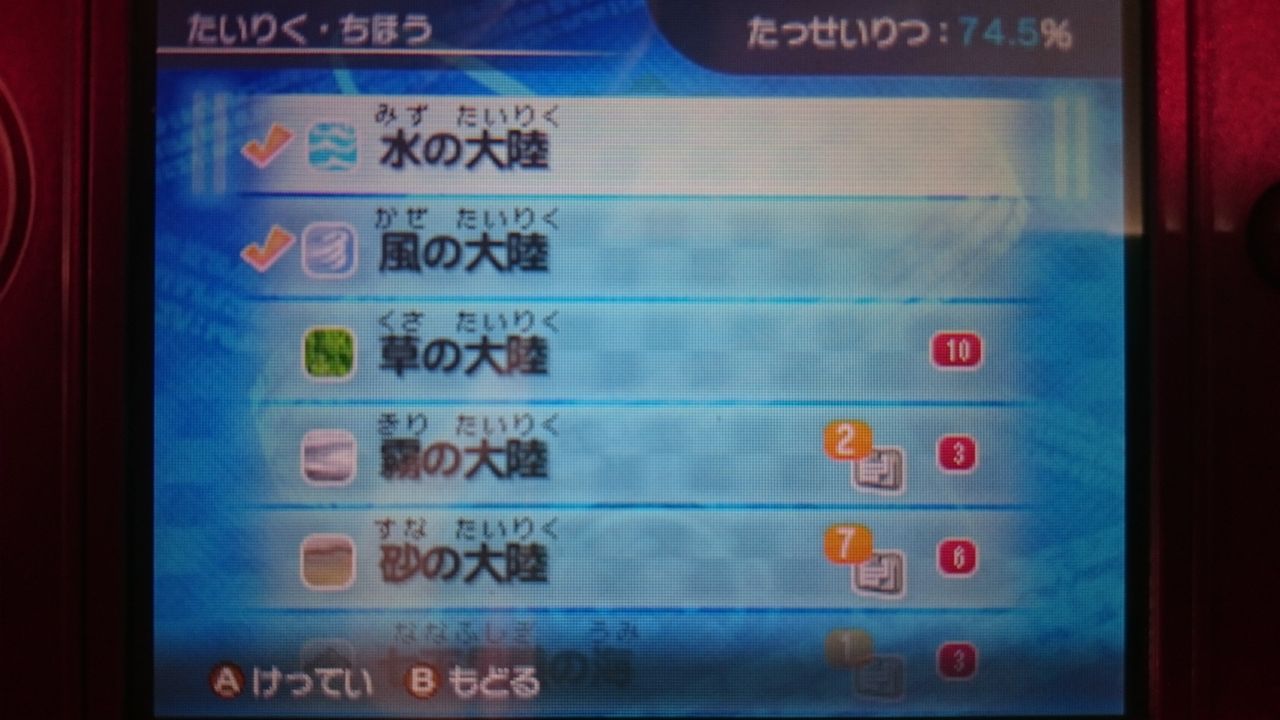 水の大陸と同様、チェックマークが付きました。