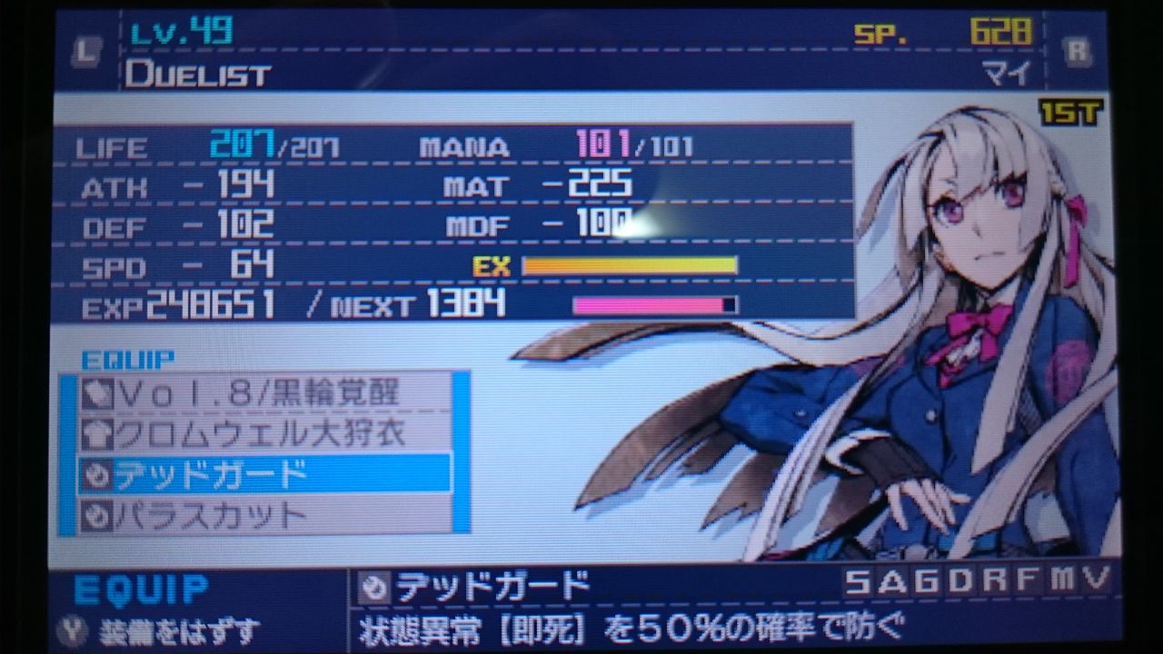 全職業1人ずつのキャラメイクしているぼくは「デュエリスト・バニッシャー・サムライ(刀)」をセットしています。