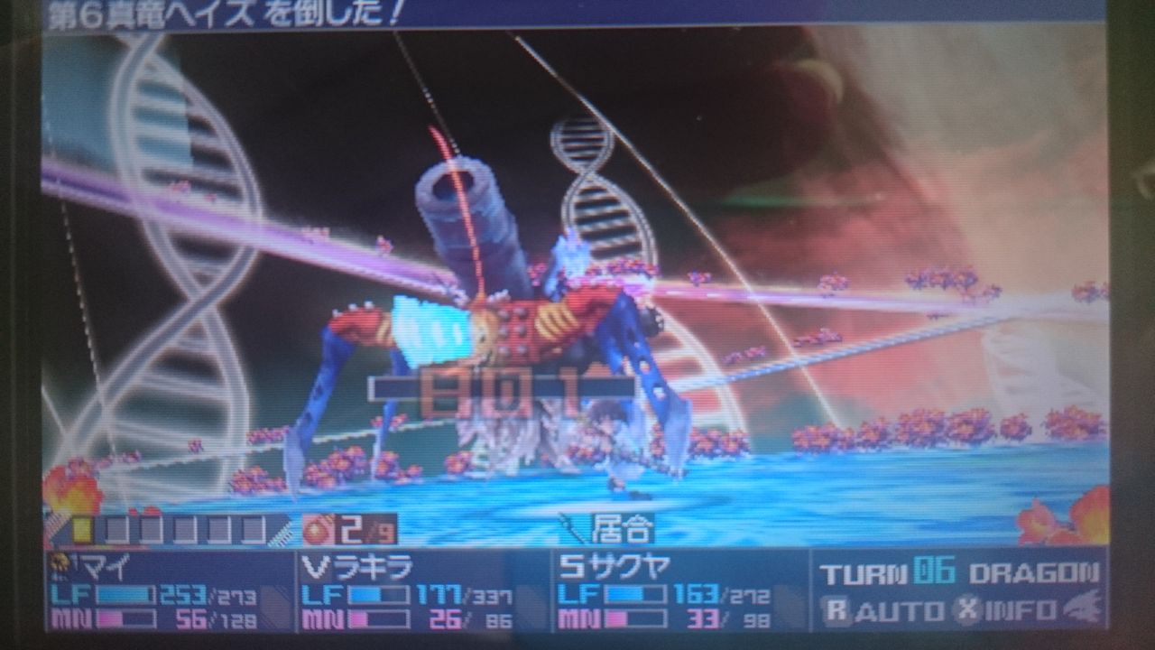 2015年11月01日 <3DS>セブドラIIIプレイ日記 「第6真竜も再び!復活のヘイズ VS 3rdユニット」 スポンサーリンク 2ndユニットが終われば次は3rdユニットです。2ndユニットと同じく道中の雑魚ドラゴンたちを退治しながら進むと…。やはり出ました!第6真竜ヘイズ!今回は6ターンかかりましたが、こっちも当時の強さと変わらないように思えます。奥義と装備を揃えていれば問題ないかと。さあここまで来れば残るは1stユニットのみ!これまでより楽に戦える!……。合流するんかい!!笑今回、1stユニットだけは単体で何かをするということがありませんでした。今度こそ第7真竜との戦闘なのか、まだ別の真竜たちとの戦闘が残っているのか。先が読めなくなってしまいましたね;;松山勝弘(まつやままさひろ) 「<3DS>セブンスドラゴンIII code:VFD」カテゴリの最新記事 スポンサーリンク < 前の記事次の記事 > コメント コメントフォーム 名前 コメント 評価する リセット リセット 顔 星 投稿する 情報を記憶 トラックバック