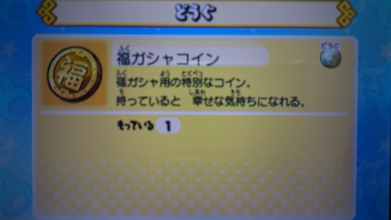 実は、今日の分のガシャを回そうとしたら「福ガシャコイン」がそこにはありませんでした。
