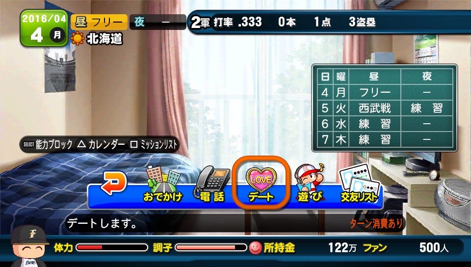 彼女ができると、「交友」に「デート」という選択肢が新たに加わります。