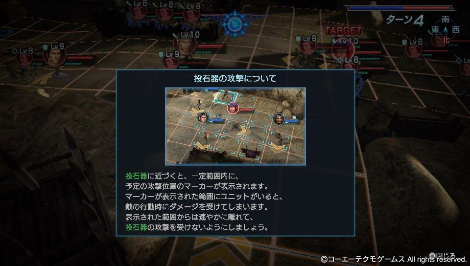 投石器に近付くと、これの予定攻撃範囲がマーカーで表示され。