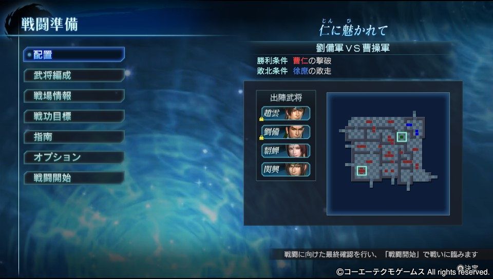 勝利条件「曹仁の撃破」、敗北条件「徐庶の敗走」と一見は簡単そうなのですが。