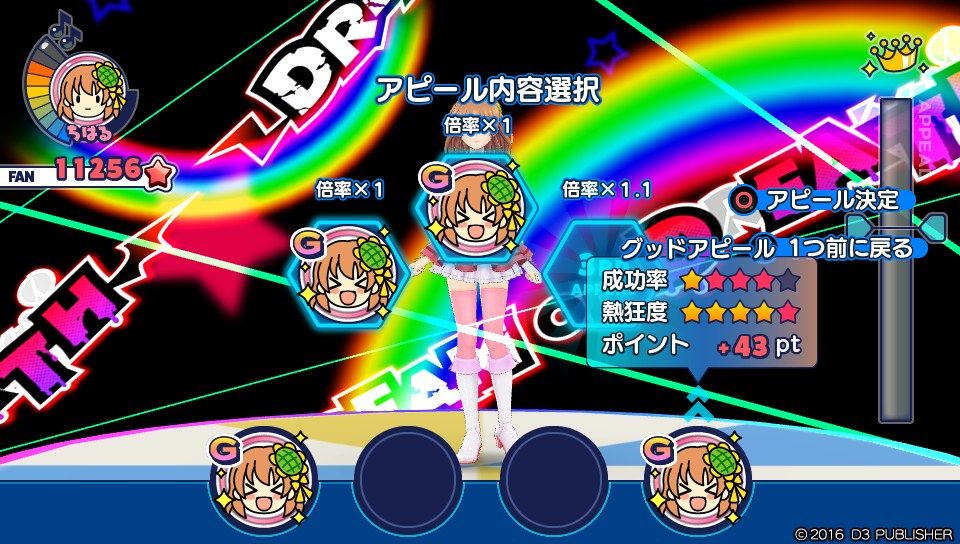 2016年10月21日 <PSV>アイドルデスゲームTV プレイ日記 「DREAM☆演技審査 やることはダンスと同じ、得意かどうかでアイテム補強すればok」 スポンサーリンク 3つ目のお題は「演技」ですが。やることはダンスと何ら変わりまりません。審査で実際にやるのは、3つの枠にNかGをはめ込むだけ。得意でないなら探索中にテンション上げやアイテム補強をしておくのみです。審査とは関係ありませんが少し違ったことと言えば。「次のステージ、覚悟しておけ」とドリパクに言われたことくらい。茅ヶ崎千春編でしか起きないイベントでしょうか。あ、それと忘れてはいけないのは。進むに連れ人数が減っていくことですね。ダンスとやることは同じとは言え、人数が1人減っているので。あまり探索の時間が取れなくなってきている点には注意が必要です。松山勝弘(まつやままさひろ) 「<PSV>アイドルデスゲームTV」カテゴリの最新記事 スポンサーリンク < 前の記事次の記事 > コメント コメントフォーム 名前 コメント 評価する リセット リセット 顔 星 投稿する 情報を記憶 トラックバック