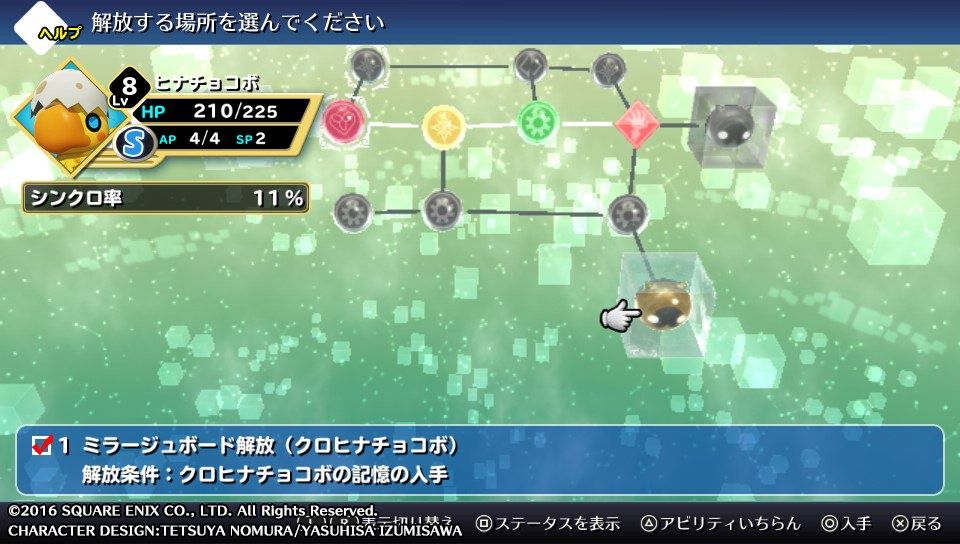 倒すかジェム化した最初の戦闘勝利後のみ、「クロヒナチョコボの記憶」というアイテムが1つ手に入り。