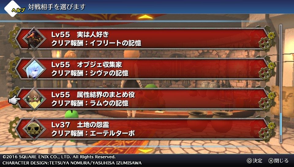 と言うのが、今回のイベント後に新たにシヴァ、イフリート、ラムウのそれぞれ1体ずつと戦うものが闘技場に追加されていたのですが。