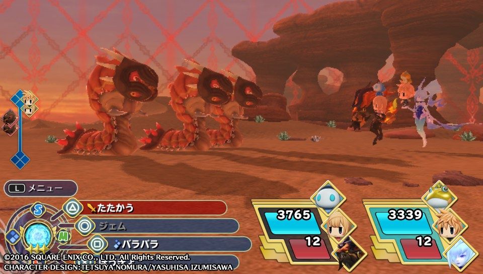 2016年11月04日 <PSV>ワールドオブファイナルファンタジー WOFF プレイ日記 「VS.サンドウォーム3体 着実に1体ずつ倒せば、なんてことはない相手」 スポンサーリンク 「幻の砂漠」のセーブクリスタルのある場所から。次のエリアに入ると同時にイベント&ボス戦。敵は「サンドウォーム」が3体です。「圧搾」という単体高火力アビリティを持っていますが。ゲージの溜まりがトロイので、さっさと高火力アビリティを連発していれば比較的簡単に倒せるかと。与ダメージ量敵に、魔法防御もさほど高くなかったようですし。着実に1体ずつ倒していけば回復の手間もなく勝てます。倒すとイベントで「ライトニング」登場。「夜の砂漠」になりました。松山勝弘(まつやままさひろ) 「<PSV>WORLD OF FINAL FANTASY」カテゴリの最新記事 スポンサーリンク < 前の記事次の記事 > コメント コメントフォーム 名前 コメント 評価する リセット リセット 顔 星 投稿する 情報を記憶 トラックバック