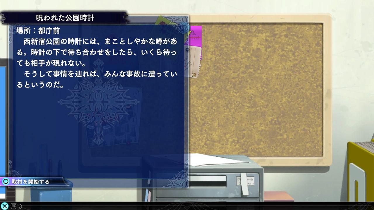 Chapter.5で富士山レイヤーをクリアした後に追加された取材メモ2つのうち「呪われた公園時計」に関してです。