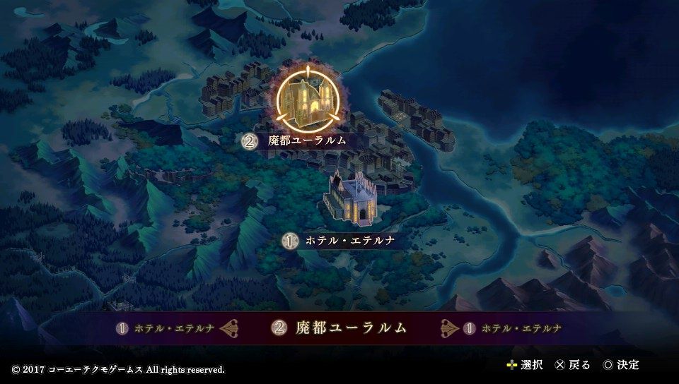 倒した後にマップの確認をしてみると、今いるダンジョン「廃都ユーラルム」とは、先ほどカミラと一緒に歩いた場所(ネーロが仲間になった場所)でした。