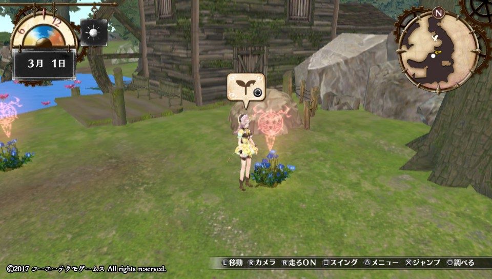壊せる採取ポイントに近付くと、□ボタンか○ボタンを使えという表示が出現。