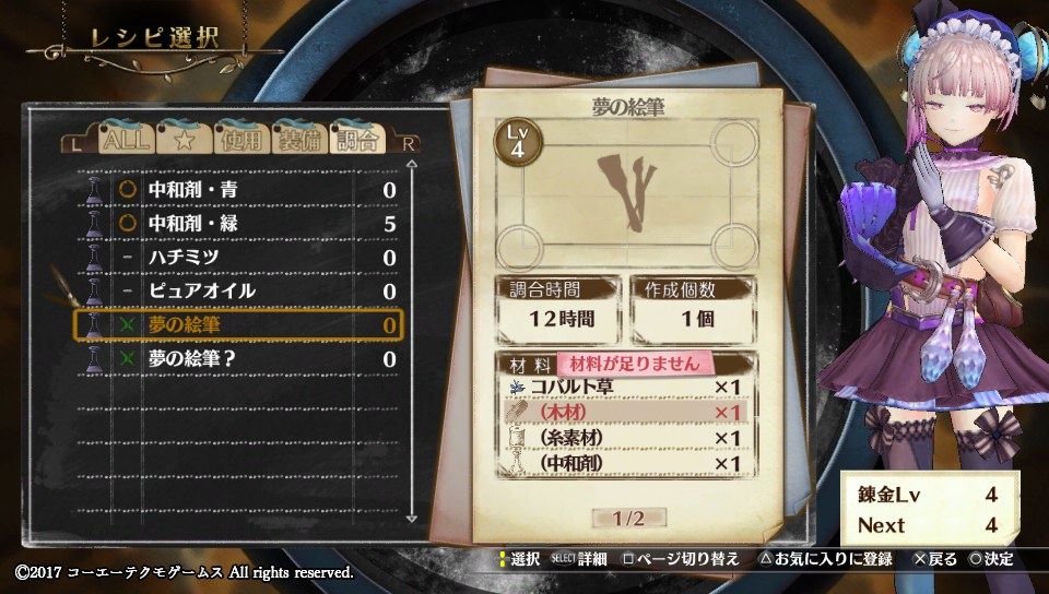 もらったレシピで「夢の絵筆?」を作って納品するも不合格。
