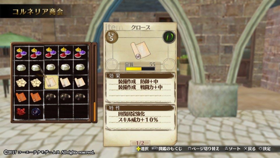 消費アイテムの他にも様々な調合アイテムが登録可能。
