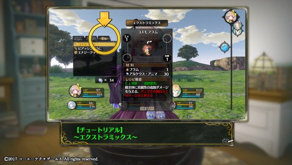 バトルミックスの調合画面が開けばそこにエクストラミックスのアイテムも入っていました。