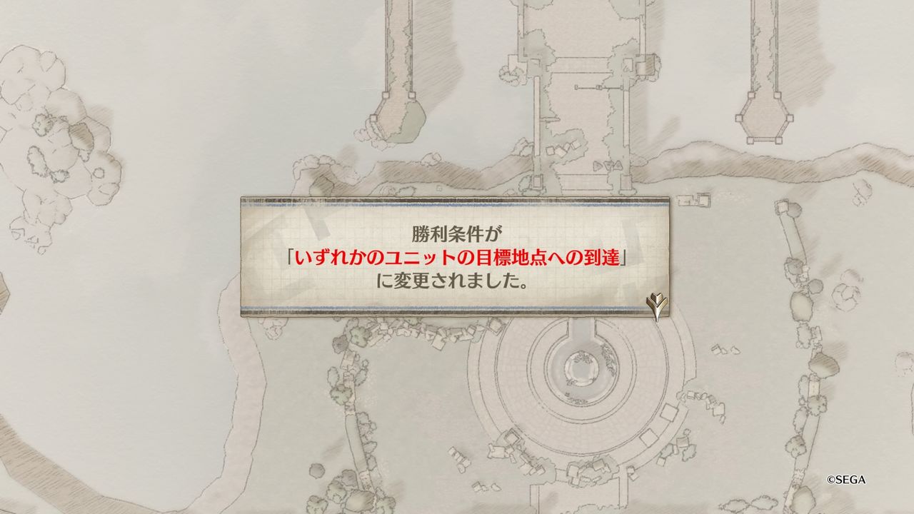 要塞前にある広場の敵本拠点を占拠したところで、勝利条件が目標地点への到達に変わりました(前の記事はこちら)。