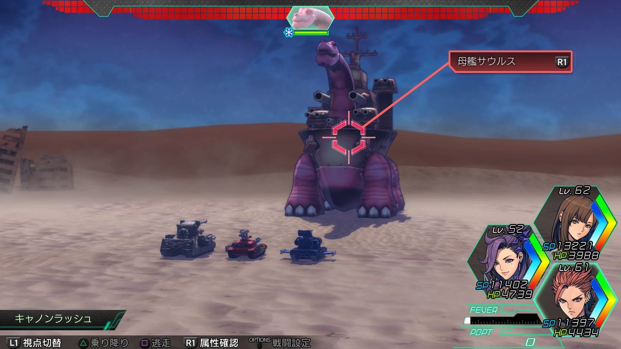 序盤はこれらを特技「乱射」や特性チップ「キャノンラッシュ」「S-Eラッシュ」などで撃ちまくっています。
