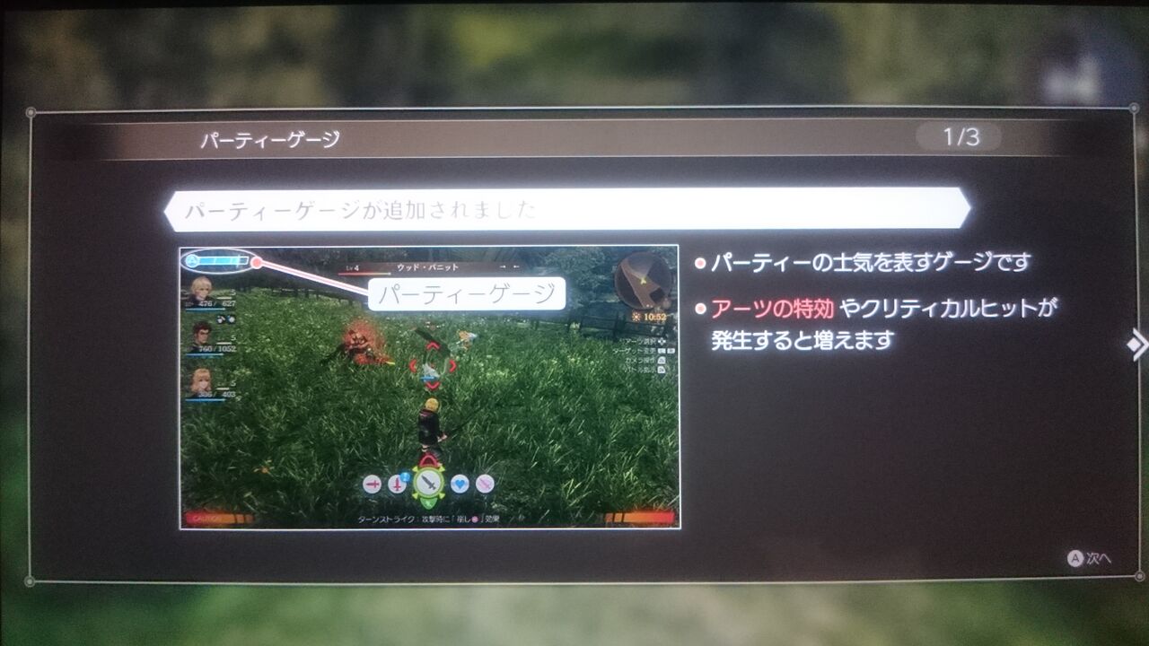 突発キズナでタイミング良くBボタンを押せたら、仲間同士のキズナ上昇の他にパーティーゲージも溜められます。
