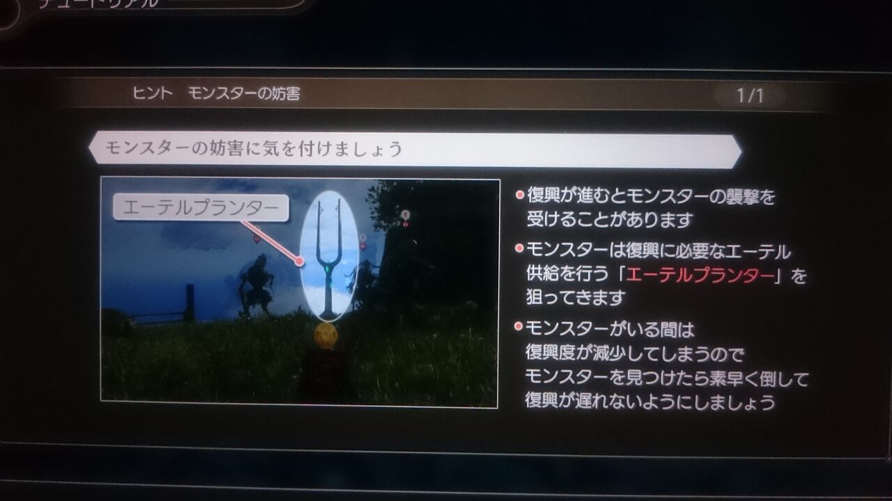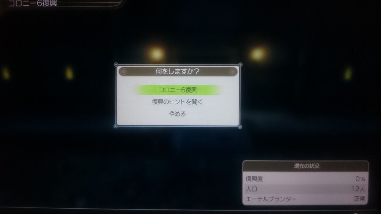 とりあえず、ジュジュに話しかけたときやクエストログからコロニー6の復興画面を開いたときに画面右下の表示を見て、「エーテルプランター 正常」となっているうちは問題ないでしょう。