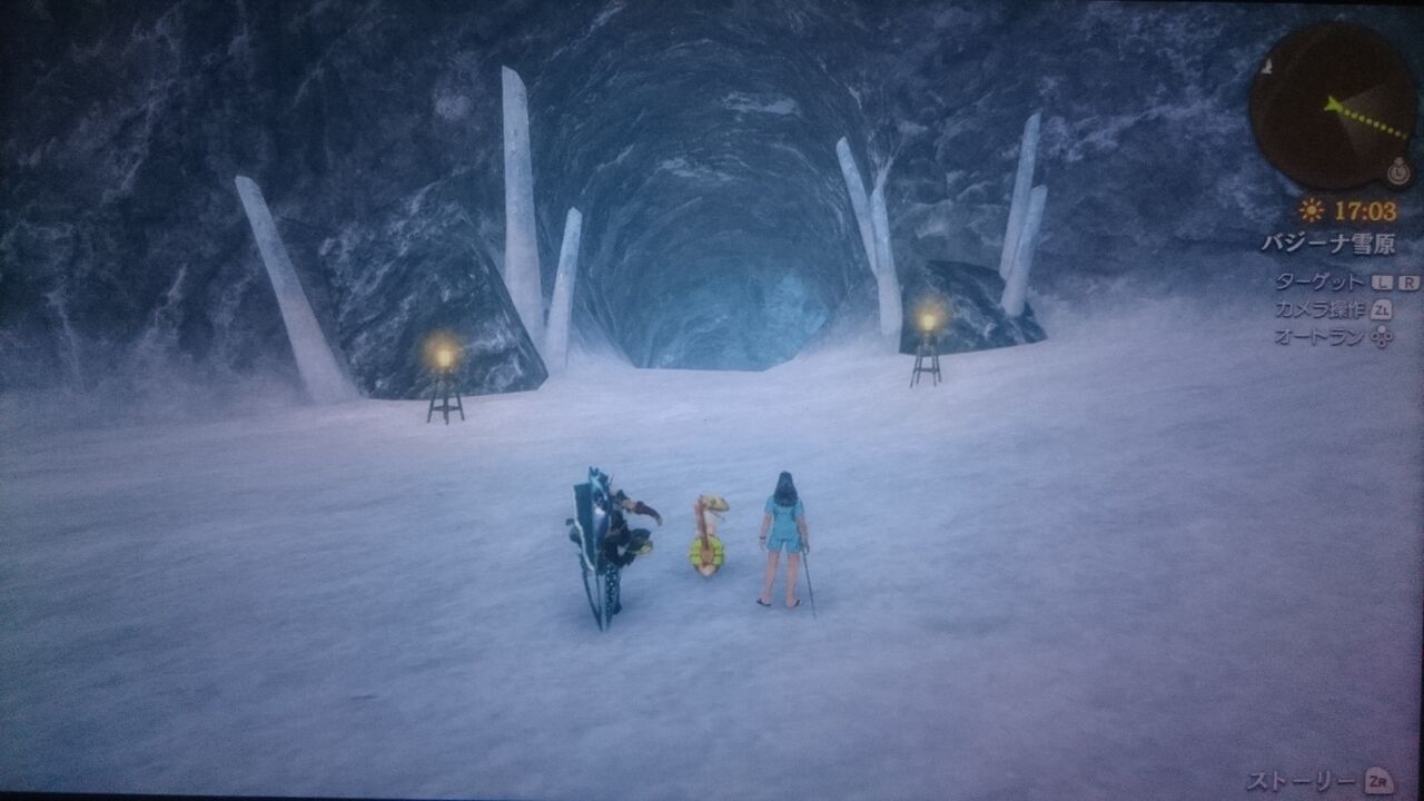 分岐では坂道を上るとロケーション「バジーナ雪原」があり、坂道を下るとランドマーク「巨神の環状骨」でした。