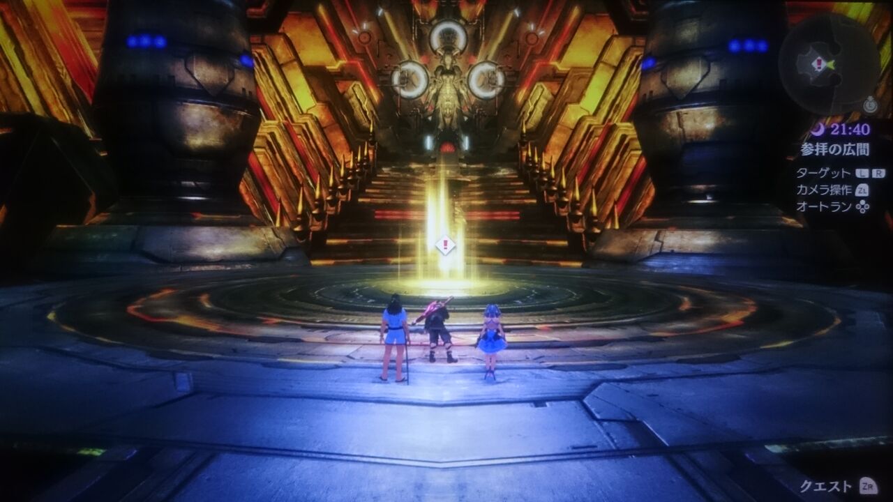 そこでのイベントを見たら、神殿へ行くための転送装置のロックを解除してまわるストーリークエストが受注されました。