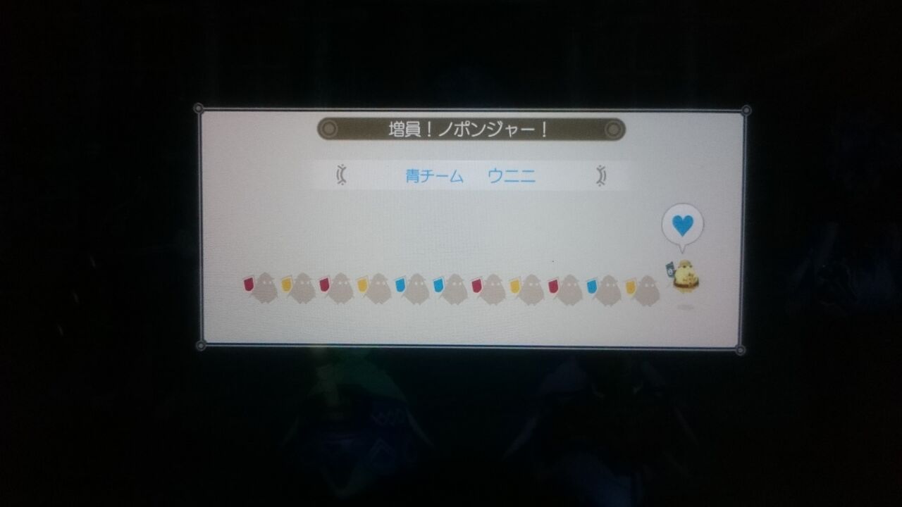 赤は攻撃、青は回復(特殊な者も)、黄はデバフ系で、抜刀キズナや突発キズナをばっちり成功させてノポンジャーをハイテンションにするとしばらくサボらずに戦ってくれるみたいです(そもそもサボる場合もあったのか…;;笑)。