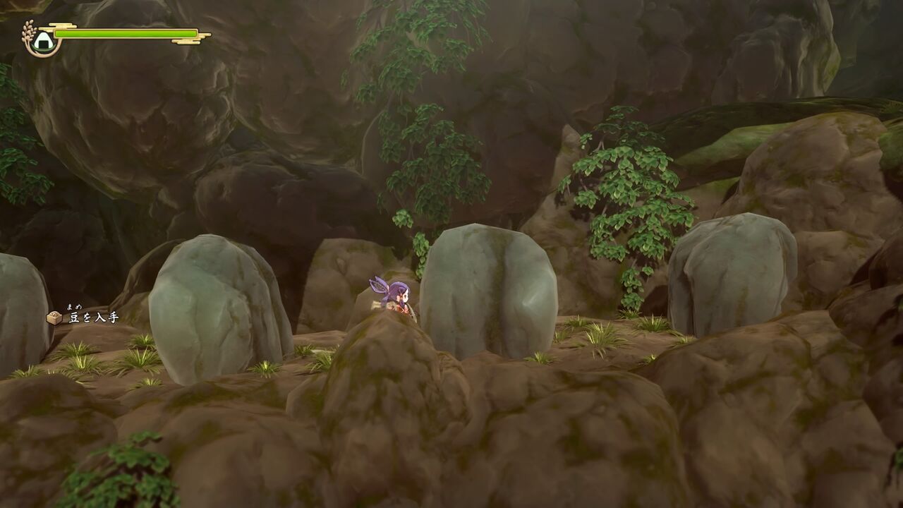 途中で岩から降りて光っている草を攻撃してみると「豆」が手に入りました。