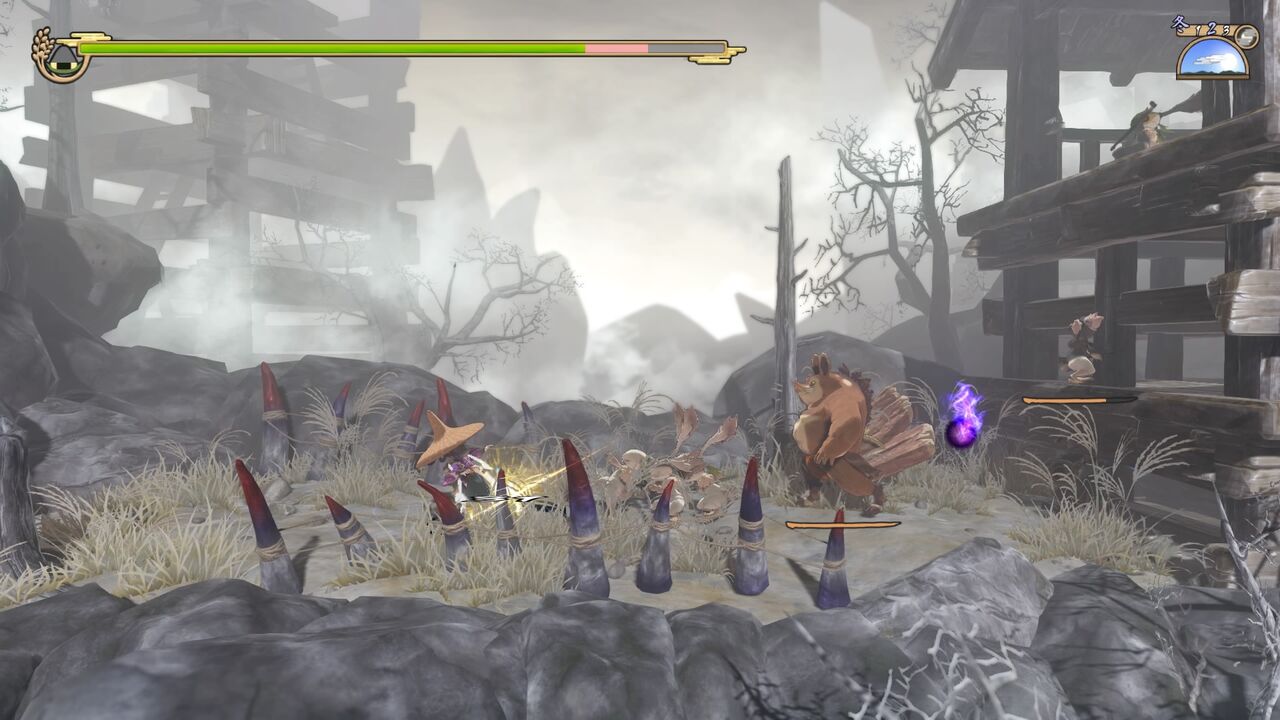 また、右手の高所にいる弓使いの兎鬼も優先して倒したいところ。