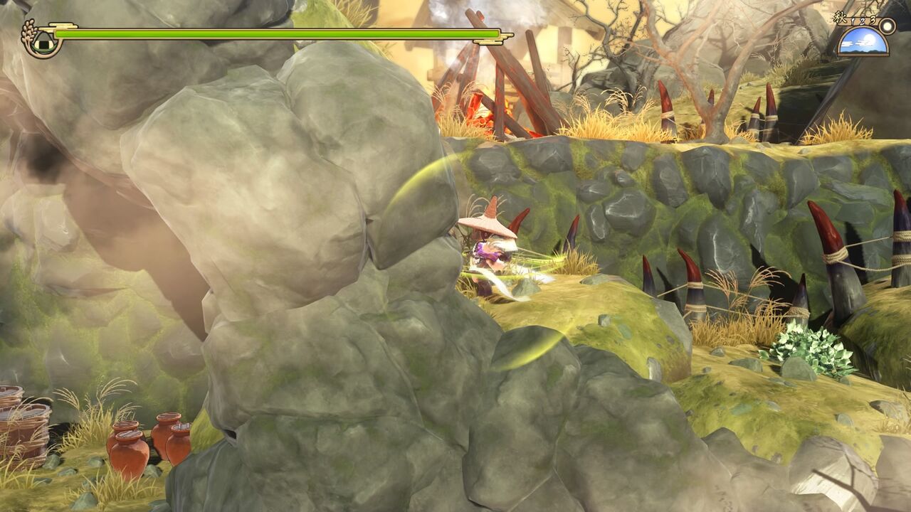 ここは「最奥の鬼衆」ではありませんが、右手の高台の屋根の下に宝箱一つと、屋根の上に上ってからさらに上の方にある足場まで飛んで行くともう一つ、宝箱が見つけられました。