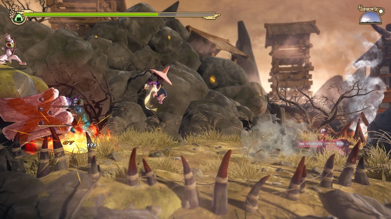 そこにも大砲が2つあり、そのまま戦うのは大変なので、上の方の大砲を扱う兎鬼は真っ先に倒してしまいましょう。