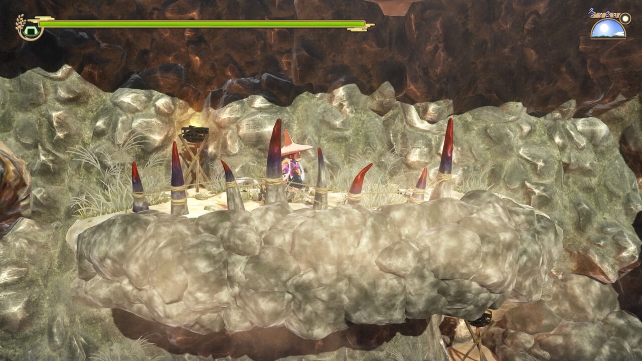 突き当たりに採掘ポイントがあり、上へ続く道を進むと、そこが最奥の強制戦闘地点です。
