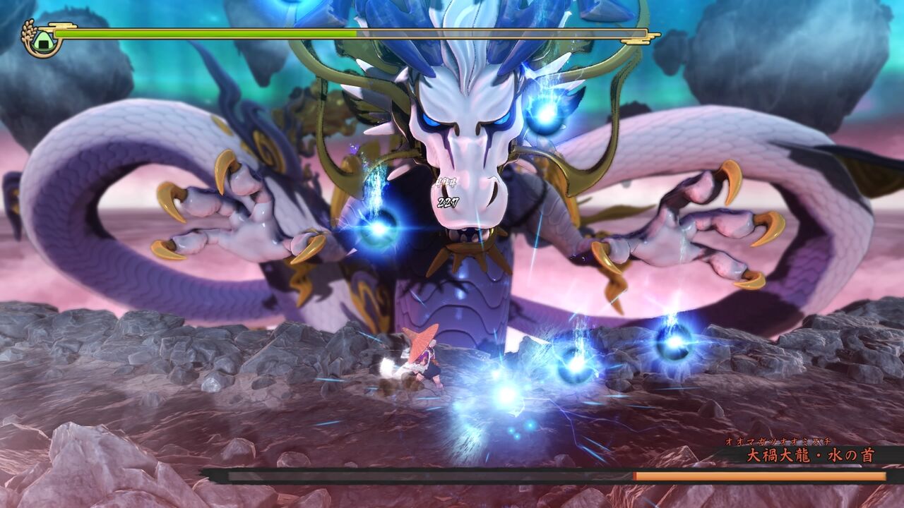 そこに追尾型の水の弾を連発してきたり、両手と頭の三連撃を繰り出されると、避けるのとバリアとで使い分けが少し大変な場面もありました。